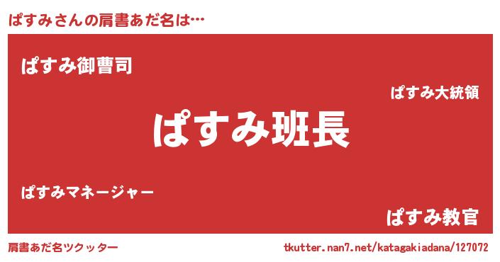 | 男性向けラノベタイトル風あだ名 | 『ダンジョンにぱすみを求めるのは間違っているだろうか』 |