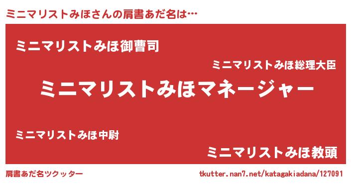 | 女子向けラノベタイトル風あだ名 | 『横柄ミニマリストみほと宰相陛下』 |