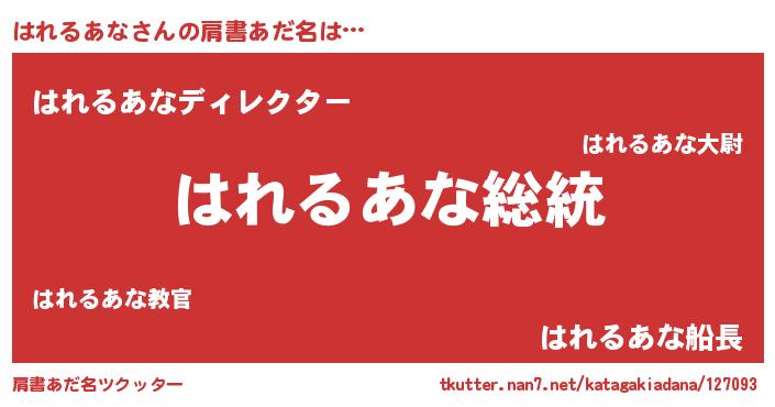 | ヒーロー風カッコイイあだ名 | 『超時空戦士ハレルアナ』『仮面ハレダー』 |