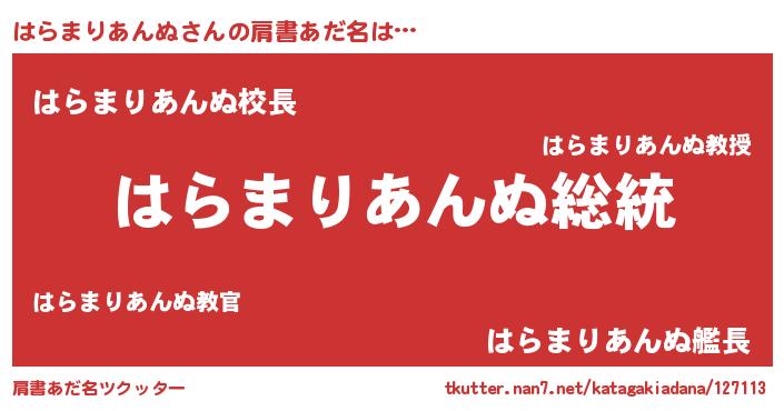 | 意味不明あだ名 | 『自称はらまりあんぬ』 |