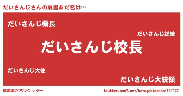 | 意味不明あだ名 | 『永久保存だいさんじ』『自称だいさんじ』 |