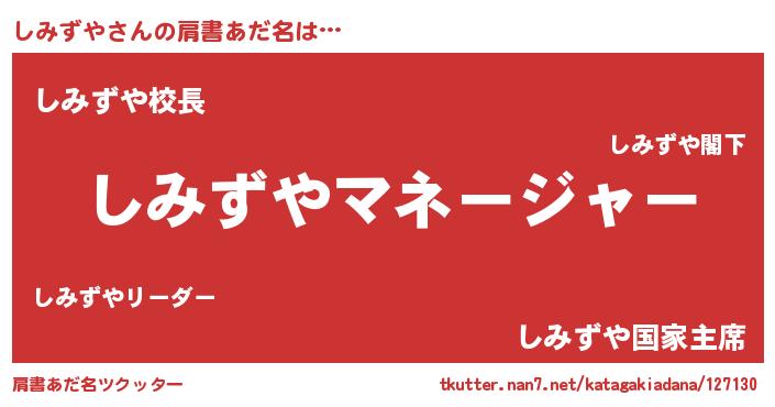| 意味不明あだ名 | 『永久保存しみずや』『自称しみずや』 |