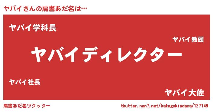 | ヒーロー風カッコイイあだ名 | 『正義の使者ヤバイ』『ネオヤバイ』 |