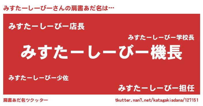 | ヘコむあだ名 | 『みすっふぃ~』『みすたーしーびー(爆)』 |