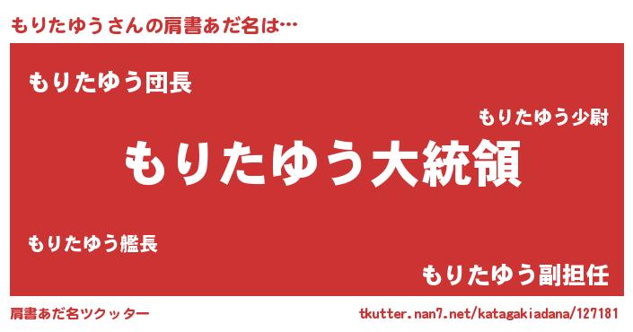 | ポケモン風あだ名 | 『モリタダネ』『ヒモリタユウ』 |