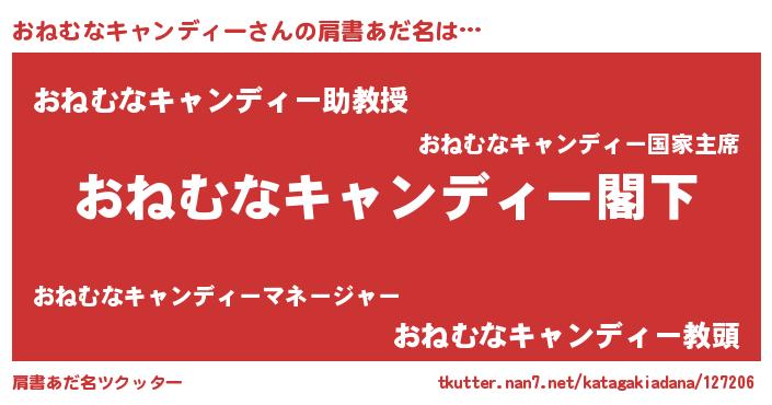 | 意味不明あだ名 | 『自称おねむなキャンディー』 |
