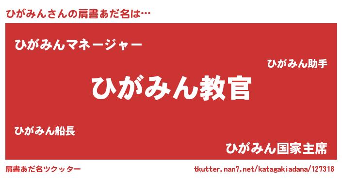 | ヒーロー風カッコイイあだ名 | 『仮面ヒガダー』『ウルトラひがみんマン』 |