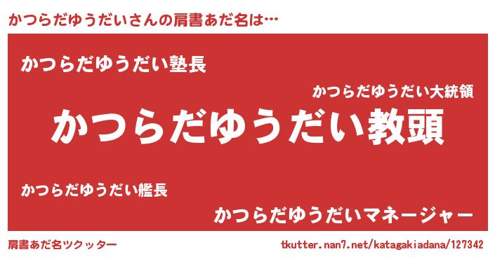 | 意味不明あだ名 | 『永久保存かつらだゆうだい』 |