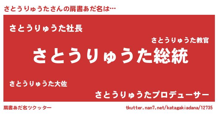 | 男性向けラノベタイトル風あだ名 | 『魔法科高校のさとうりゅうた』 |