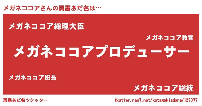 | 意味不明あだ名 | 『メガネココアフォーエバー』 |