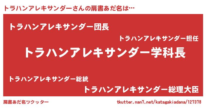 | ヒーロー風カッコイイあだ名 | 『正義の使者トラハンアレキサンダー』 |
