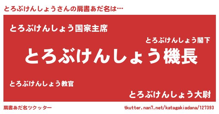 | 男性向けラノベタイトル風あだ名 | 『緋弾のトロブケンショウ』 |