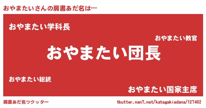 | 胡散臭い通販商品みたいなあだ名 | 『信頼と実績のサプリメント…その名も「おやまたい」』 |