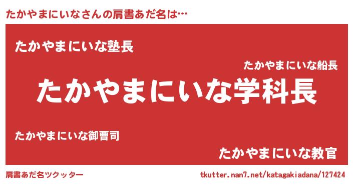 | 料理風あだ名 | 『たかやまにいなのトマト煮』 |