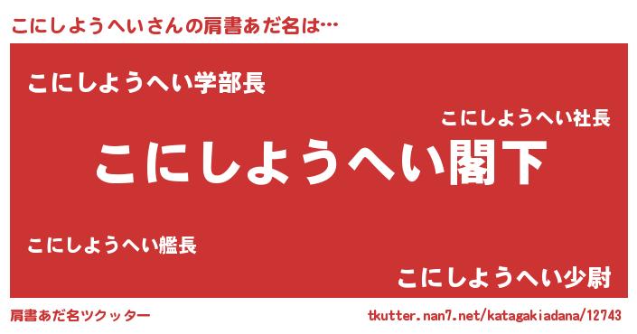 | 意味不明あだ名 | 『自称こにしようへい』 |