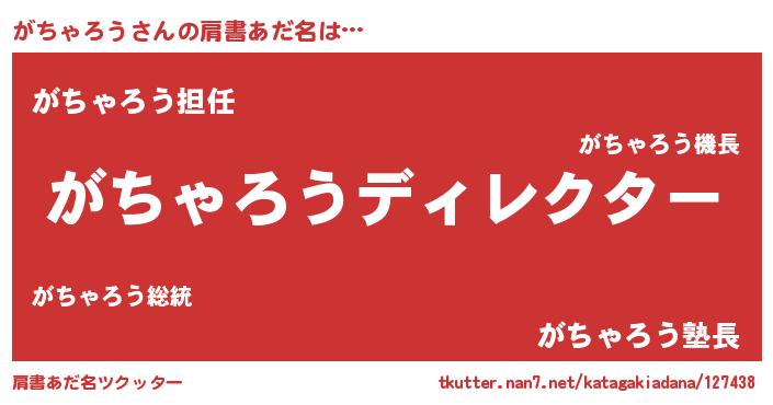 | ヘコむあだ名 | 『がちゃろう(爆)』『がちっぺ』 |