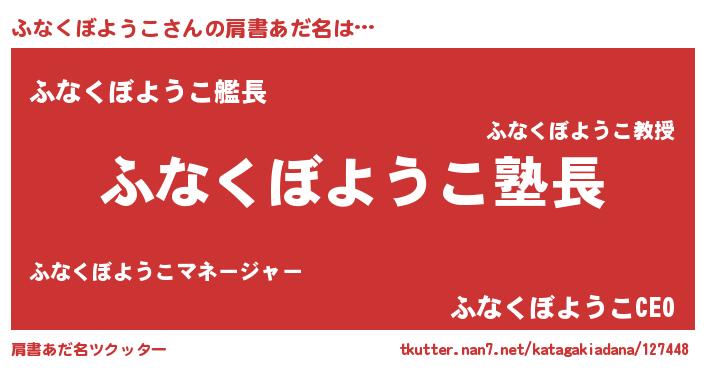| 意味不明あだ名 | 『とにかく怪しいふなくぼようこ』 |