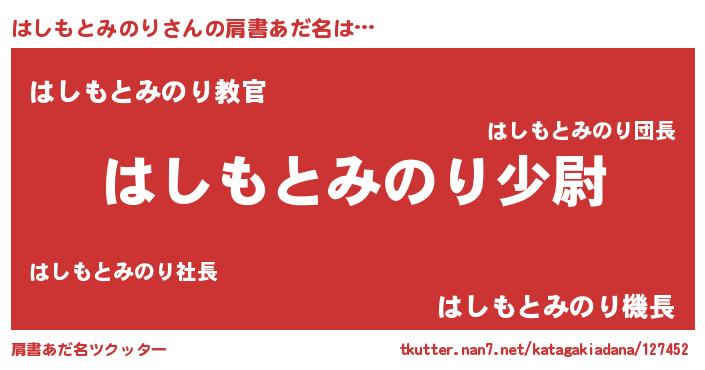 | 女子向けラノベタイトル風あだ名 | 『はしもとみのりの玉の輿計画!』 |
