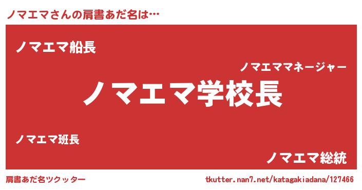 | ヒーロー風カッコイイあだ名 | 『友情の使者ノマエマ』『暗黒騎士ノマ』 |