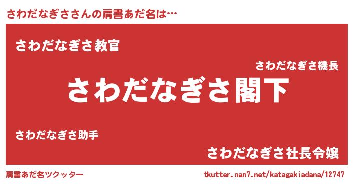 | 女子向けラノベタイトル風あだ名 | 『さわだなぎさなんてお断りですっ。』 |