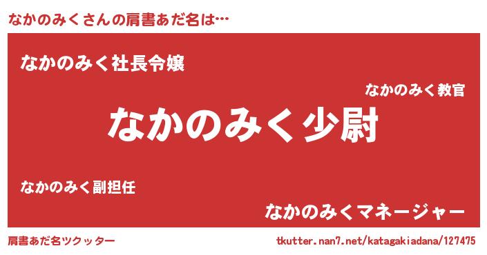 | 女子向けラノベタイトル風あだ名 | 『なかのみくの玉の輿計画!』 |