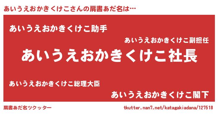| 女子向けラノベタイトル風あだ名 | 『あいうえおかきくけこ姫と円卓の騎士』 |