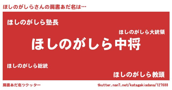 | 男性向けラノベタイトル風あだ名 | 『ほしのがしら~年齢イコール彼女いない歴の魔法使い~』 |