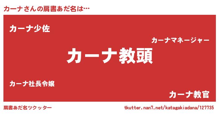 | 男性向けラノベタイトル風あだ名 | 『カーナという概念が存在しない退屈な世界 』 |