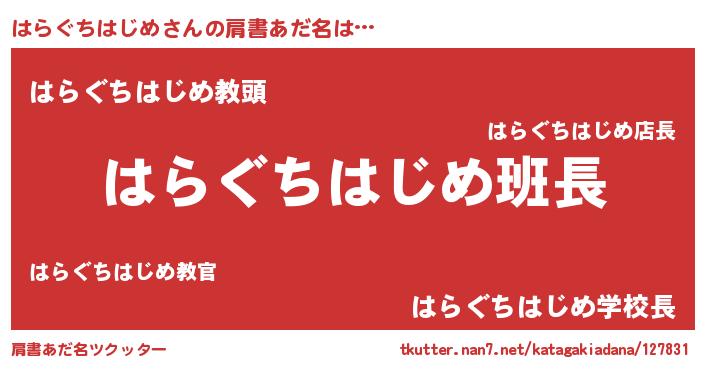 | 男性向けラノベタイトル風あだ名 | 『はらぐちはじめの嫁は女の子じゃないと思った?』 |