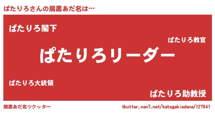 | 意味不明あだ名 | 『とにかく怪しいぱたりろ』 |