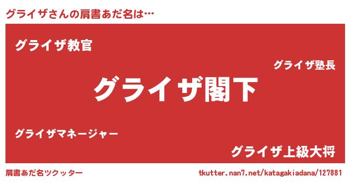 伝説のあだ名 | 『解き放たれた魔法使いグライザ』 |