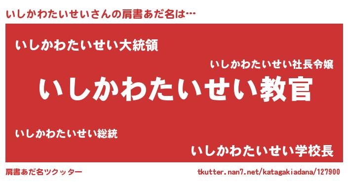 | 伝説のあだ名 | 『秘められし忍者いしかわたいせい』 |