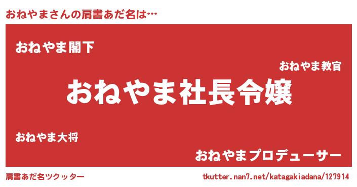 | ヒーロー風カッコイイあだ名 | 『スーパーオネヤマ』『仮面オネダー』 |