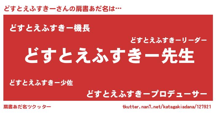 | 意味不明あだ名 | 『永久保存どすとえふすきー』 |