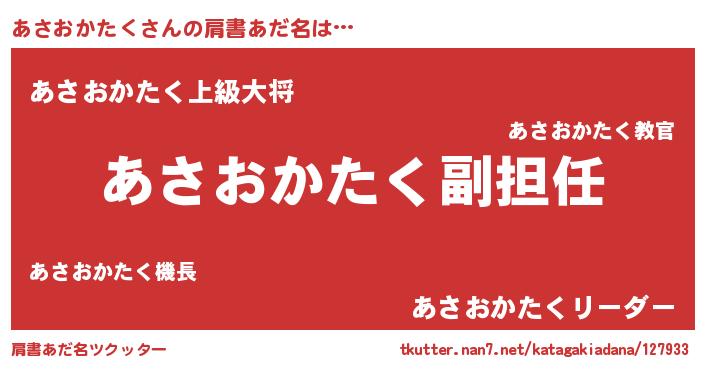 | ヘコむあだ名 | 『あさおかたく(遠い目)』『あさぷりん』 |