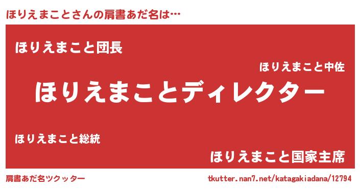 | ポケモン風あだ名 | 『ホリゴンZ』『ヒホリエマコト』 |