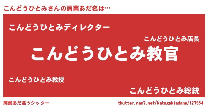 | 男性向けラノベタイトル風あだ名 | 『この素晴らしい世界にこんどうひとみを!』 |