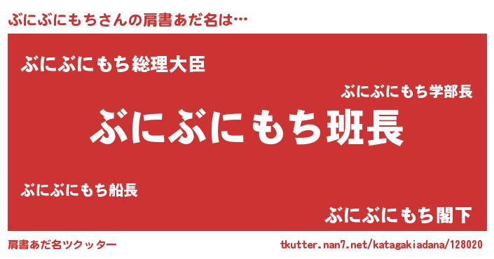 | 意味不明あだ名 | 『とにかく怪しいぶにぶにもち』 |