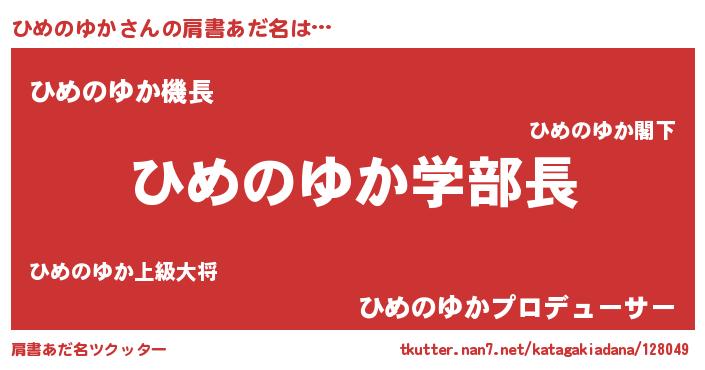 | 女子向けラノベタイトル風あだ名 | 『ひめのゆか恋絵巻』『闇のひめのゆか』 |