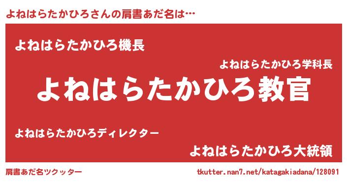 | 女子向けラノベタイトル風あだ名 | 『悪役よねはらたかひろに転生したようですが、知った事ではありません』 |