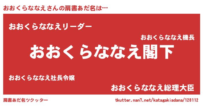 | 意味不明あだ名 | 『自称おおくらななえ』 |
