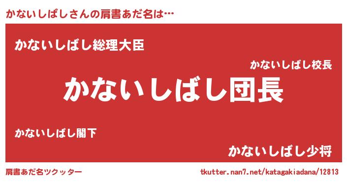 | 女子向けラノベタイトル風あだ名 | 『かないしばし様がみてる』 |