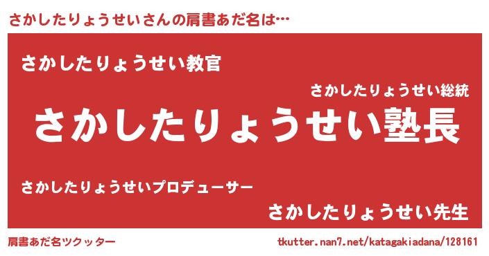 | 胡散臭い通販商品みたいなあだ名 | 『信頼と実績のペンダント…その名も「さかしたりょうせい」』 |