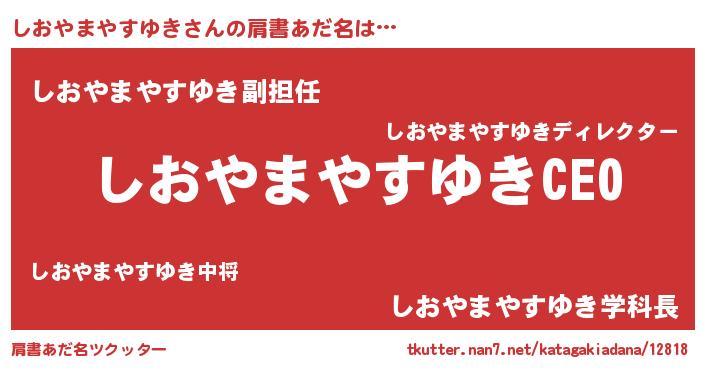 | 胡散臭い通販商品みたいなあだ名 | 『必ず成功するブレスレット…その名も「しおやまやすゆき」』 |