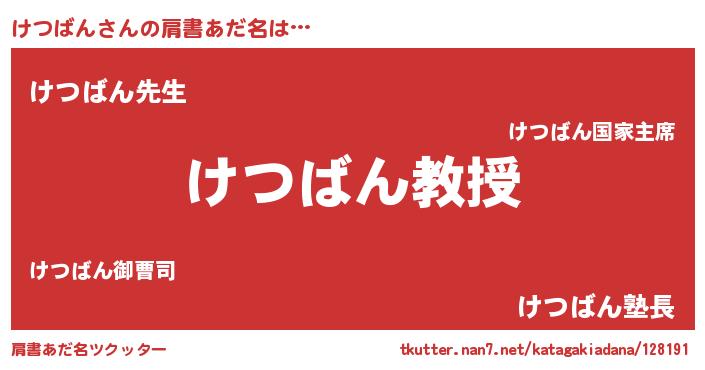 | ヒーロー風カッコイイあだ名 | 『正義の使者けつばん』『ネオケツバン』 |