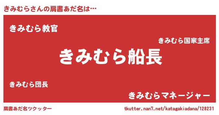 | 意味不明あだ名 | 『住所不定無職きみむら(4歳)』 |