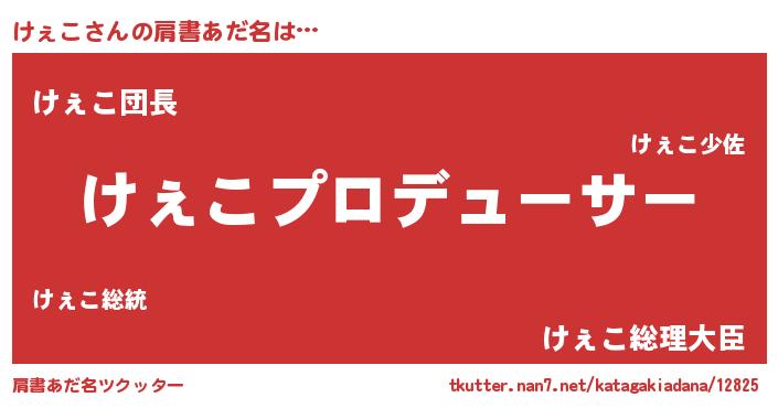 | ヒーロー風カッコイイあだ名 | 『幻影騎士ケェ』『ウルトラけぇこマン』 |