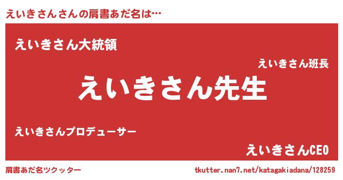 | 男性向けラノベタイトル風あだ名 | 『えいきさんという概念が存在しない退屈な世界 』 |