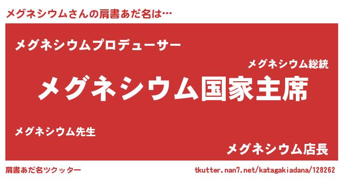 | ファンタジー風あだ名 | 『エターナルメグネシウムー』 |
