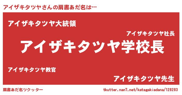 | 男性向けラノベタイトル風あだ名 | 『ノーゲーム・ノーアイザキタツヤ』 |